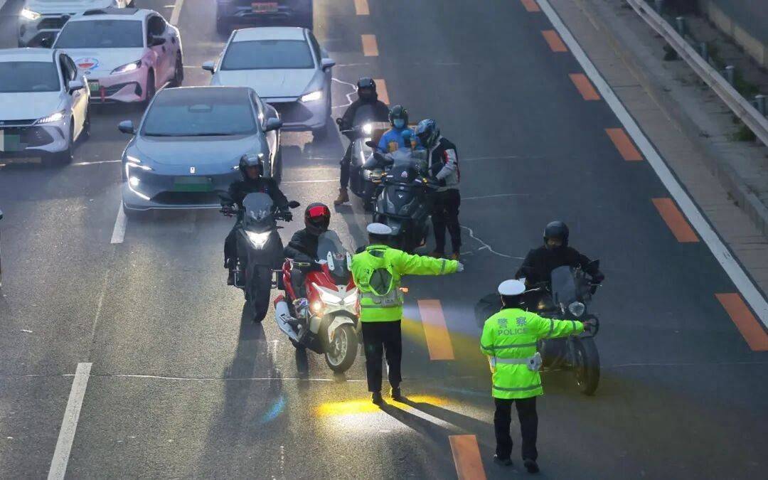 交管部门提醒广大摩托车驾驶员,出行需遵守交通法规、注意安全,应按规定走最外侧机动车道,不得违法占用公交车道和应急车道。